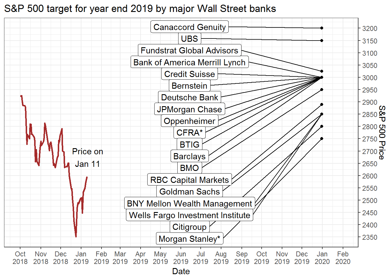 Presenting today the year end targets for 2019, by wall street analysts.